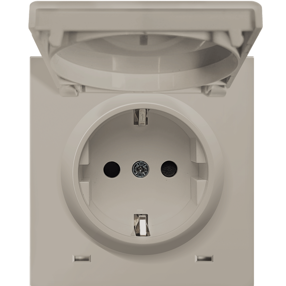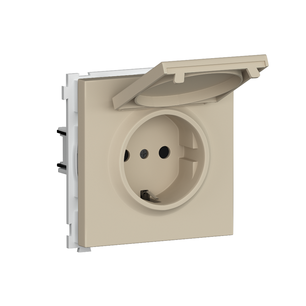 Розетка встраиваемая Donel R98 Schuko с крышкой и заземлением на винтах Кашемир матовый DA18800-DA45435