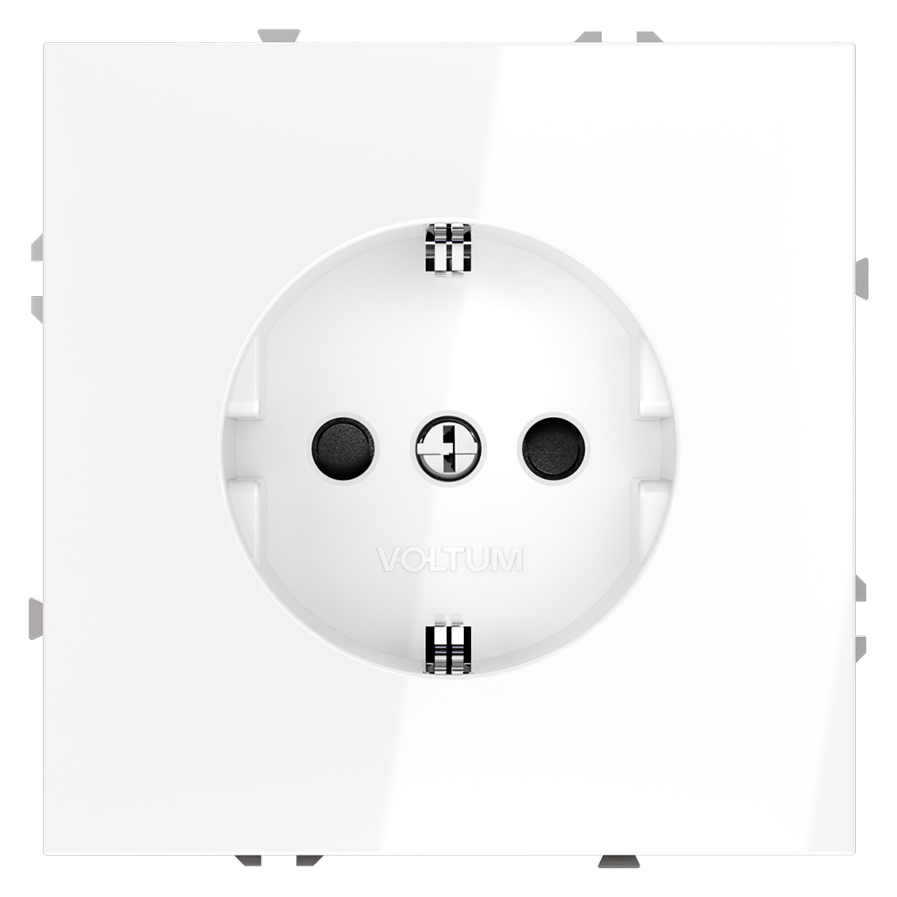 Розетка встраиваемая Voltum S70 с заземлением и шторками Белый Глянцевый VLS040201