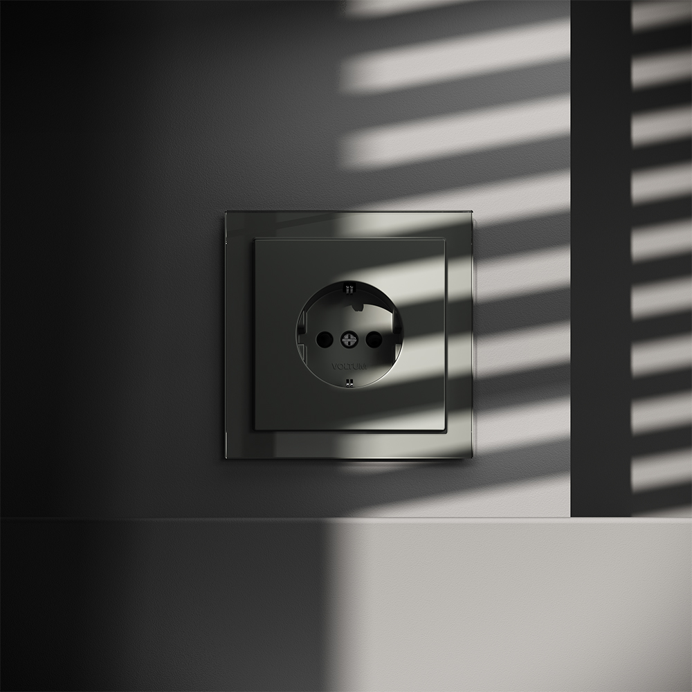 Розетка встраиваемая Voltum S70 с заземлением и шторками Титан VLS040206