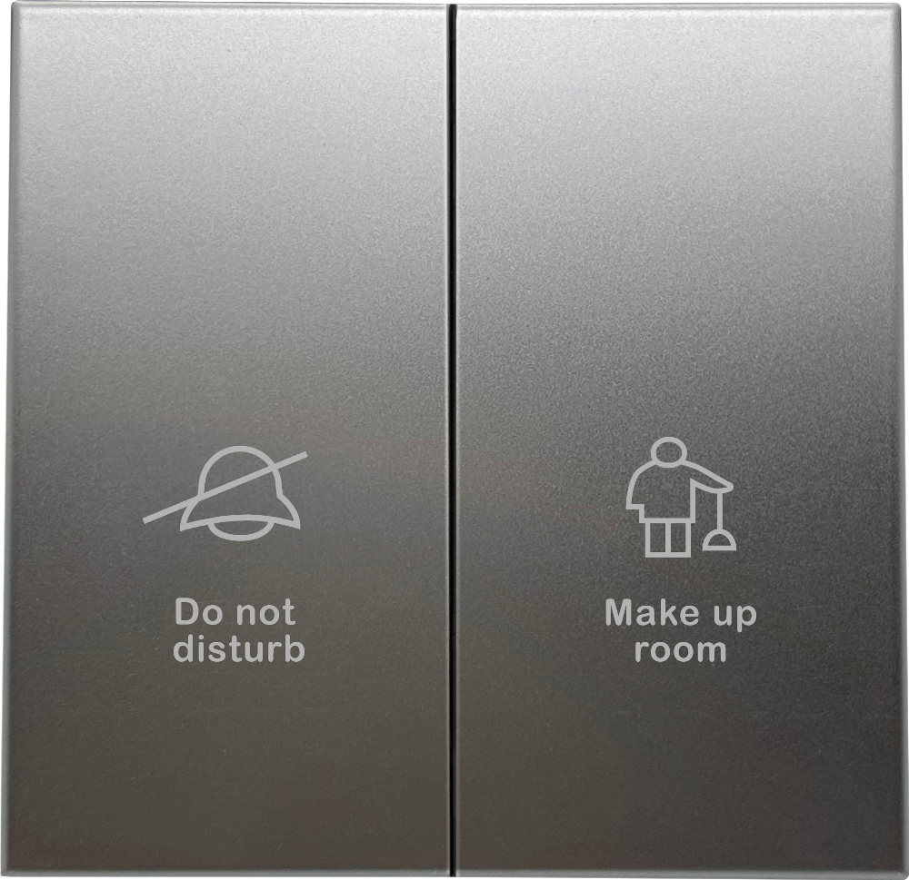 Выключатель двухклавишный встраиваемый Donel R98 Metal с символами DND/MUR Благородная сталь DA25800-DA888ES